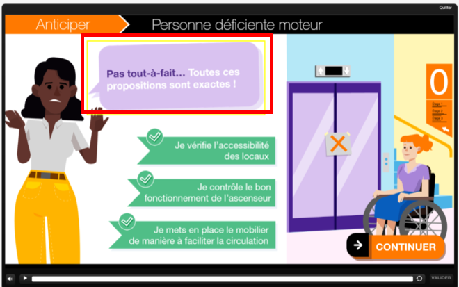 • If a time limit is essential for carrying out an exercise, offer an alternative (possibility of deactivating or modifying the time limit, or proposing a different exercise depending on the profile for example)