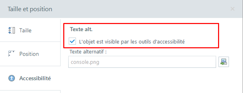 3. Enter the alternative text of buttons or objects carrying information