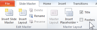 Use the Slide Master view: select the View tab > Slide Master to create or modify slides layouts.