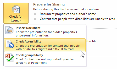 Producing accessible PowerPoint slides requires following these different recommendations: