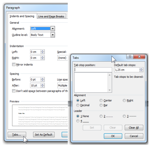 • Note: the « Tabs… » options can let you adjust the Tab stop position.