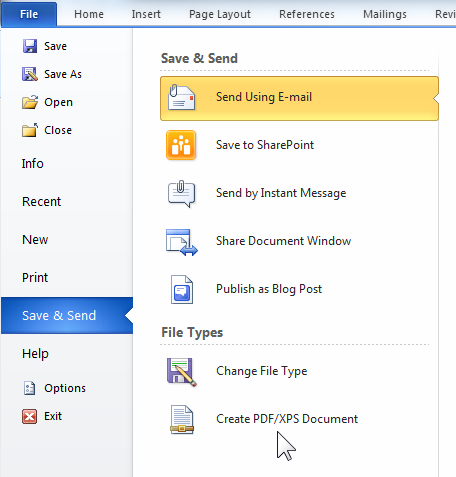 After checking the accessibility of your document (see the Testing the accessibility of your Word document section), you can convert it to a PDF file, if necessary, by selecting: File tab > Save & Send and create PDF document.