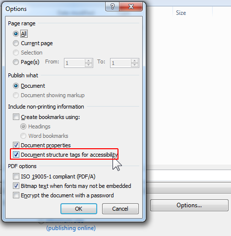 Note: with Word 2010, generated PDF documents may have accessibility issues (especially with the images vocalization). These issues have been fixed in later versions of Microsoft Office.
