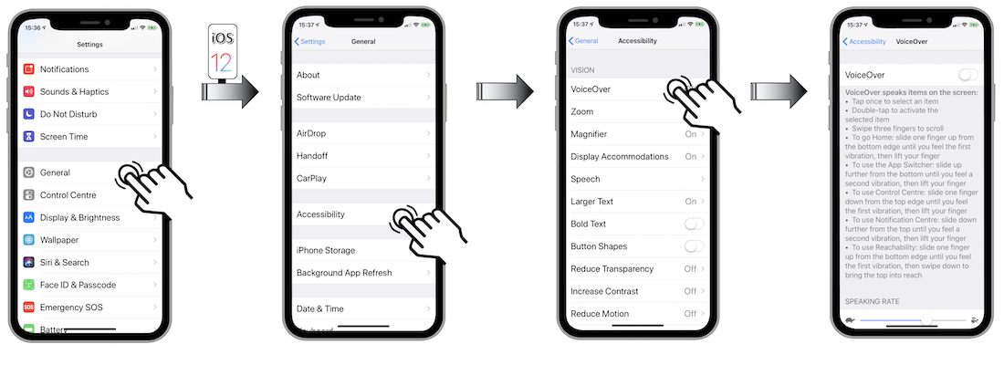 First, VoiceOver common gestures will be introduced to be followed by iPhoneX dedicated gestures.