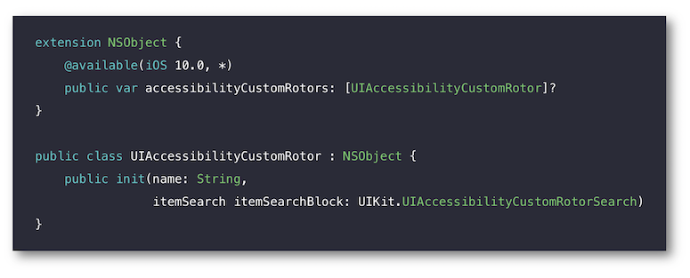 accessibilityCustomRotors (24:19) ⟹ iOS 10 new feature