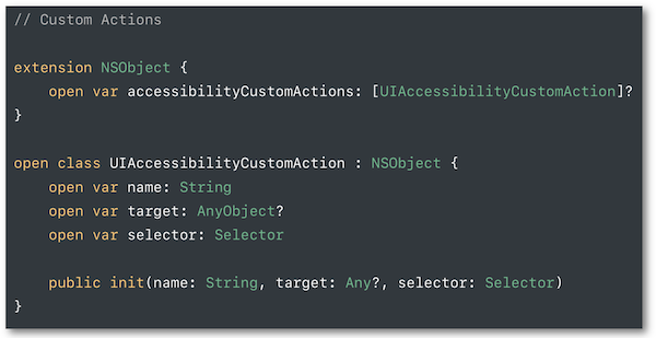 Many different actions may be attributed to an element thanks to a bunch of accessibilityCustomAction.